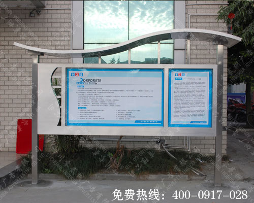 不銹鋼宣傳欄報(bào)價(jià) 宣傳欄屬于VI應(yīng)用里的一種,是組織或企業(yè)單位等進(jìn)行自我宣傳的有效手段。在以前最為常見(jiàn)的是使用黑板作為宣傳欄的制作方式,使用黑板的好處是,容易排版、成本較低、更新信息也比較方便和快捷。隨著不斷的發(fā)展,除了黑板之外產(chǎn)生了更多的宣傳欄制作工藝,最為常見(jiàn)的就是不銹鋼宣傳欄制作,那下面我們成都廣告公司就來(lái)介紹一下不銹鋼宣傳欄的設(shè)計(jì)制作: