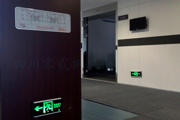 一般安放在電梯間和辦公室出口,目的是清楚指示安全出口。在消防演習或者事故發生時不可缺少。