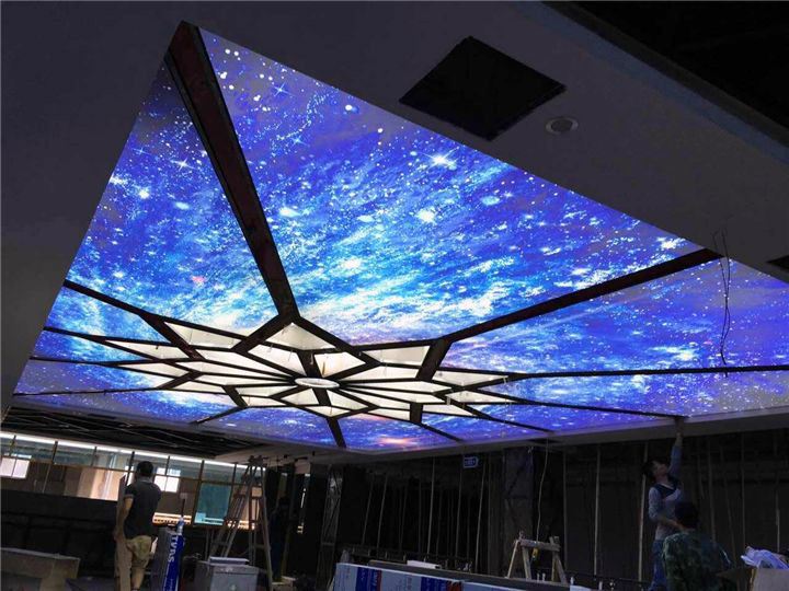 在安裝柔性軟膜吊頂所需的龍骨都固定完成后,再安裝軟膜。先把軟膜打開,用傳用的加風炮均勻加熱,然后用專用的插刀把軟膜張緊到鋁合金龍骨上,最后把四周多出的軟膜修剪完整即可, 軟膜安裝完畢后,用干凈的毛巾把軟膜吊頂清潔干凈。