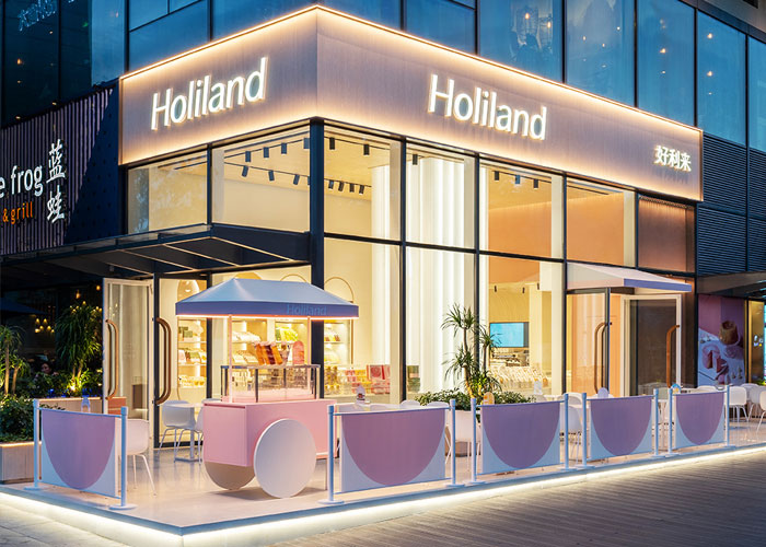 好利來企業現已發展成為生產經營蛋糕、面包、西點、中點、咖啡飲料、月餅、湯圓、粽子等產品為主,擁有分布于全國80多個大中型城市的近千家直營連鎖店。對于賣蛋糕的店鋪來說,嗅覺與視覺是吸引消費者的兩個大手段,而一個店鋪的招牌是必須要去設計好的。