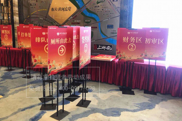 7、各功能標牌:如銷售人員標牌、接待處、簽協議處、交款處等標牌,讓買家明確功能突出運作專業性。