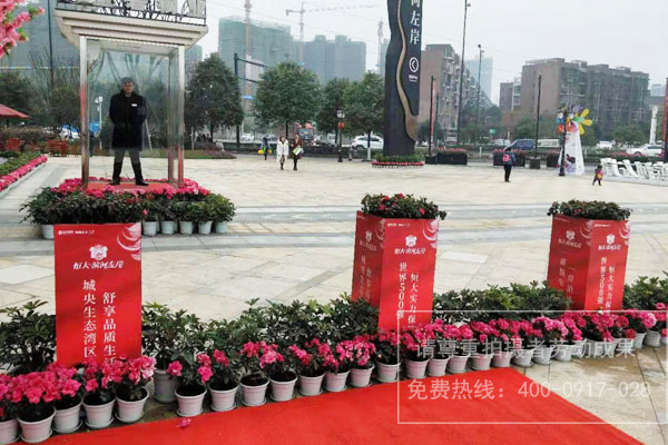 房地產行業每年最具銷售高峰期,莫過于年末期,返鄉客群量大,成交幾率高,并且市場競爭激烈,因此每一家樓盤銷售中心都會提前打好防御戰。對營銷中心進行案場氛圍包裝設計及現場廣告物料布置,其目的是營造節日氛圍,提升現場人氣,強化項目形象,擴展口碑效應。下面我們四川零貳捌成都房地產廣告公司就以我們為恒大某樓盤項目的案場包裝案例來為大家介紹一下: