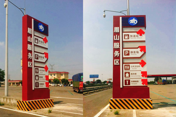一般來說,背景顏色是黃色,文本是黑色,用于在旅行時提示標志和提示工程師。藍色標志是藍色背景上帶有白色字符的方向標志,主要用于高速公路上。綠色背景白色標志是高速公路使用的標志。棕色是景點的主要標志。