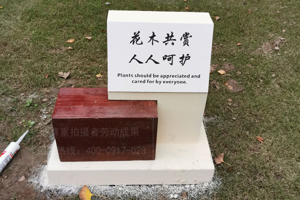花卉卡一般較短,一般在40厘米到1.兩米中間,兩面,薄厚一般在4厘米上下。有厚鋼板漆、木漆、石漆或之上原材料的組成。花卉卡常常提示群眾愛護花草,包含不必爬行、不必攀登、不必在這里場所踢球、不必在這里場所遛貓遛狗。一般來說,它關鍵根據方式,并出示文字或外語翻譯。