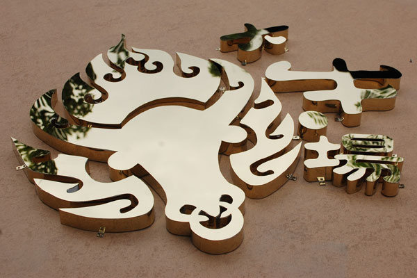 3.電鍍金不銹鋼字符由一般厚鋼板做成。做成并成形后,他們歷經電鍍金解決,使他們像金黃一樣端莊雅致。