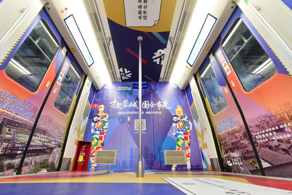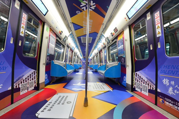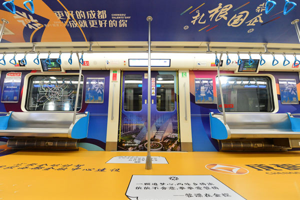 專列以“才聚蓉城,國企當先”為主題,選用漸變藍為車廂主色調,寓意國企是人才發展的一片藍海。