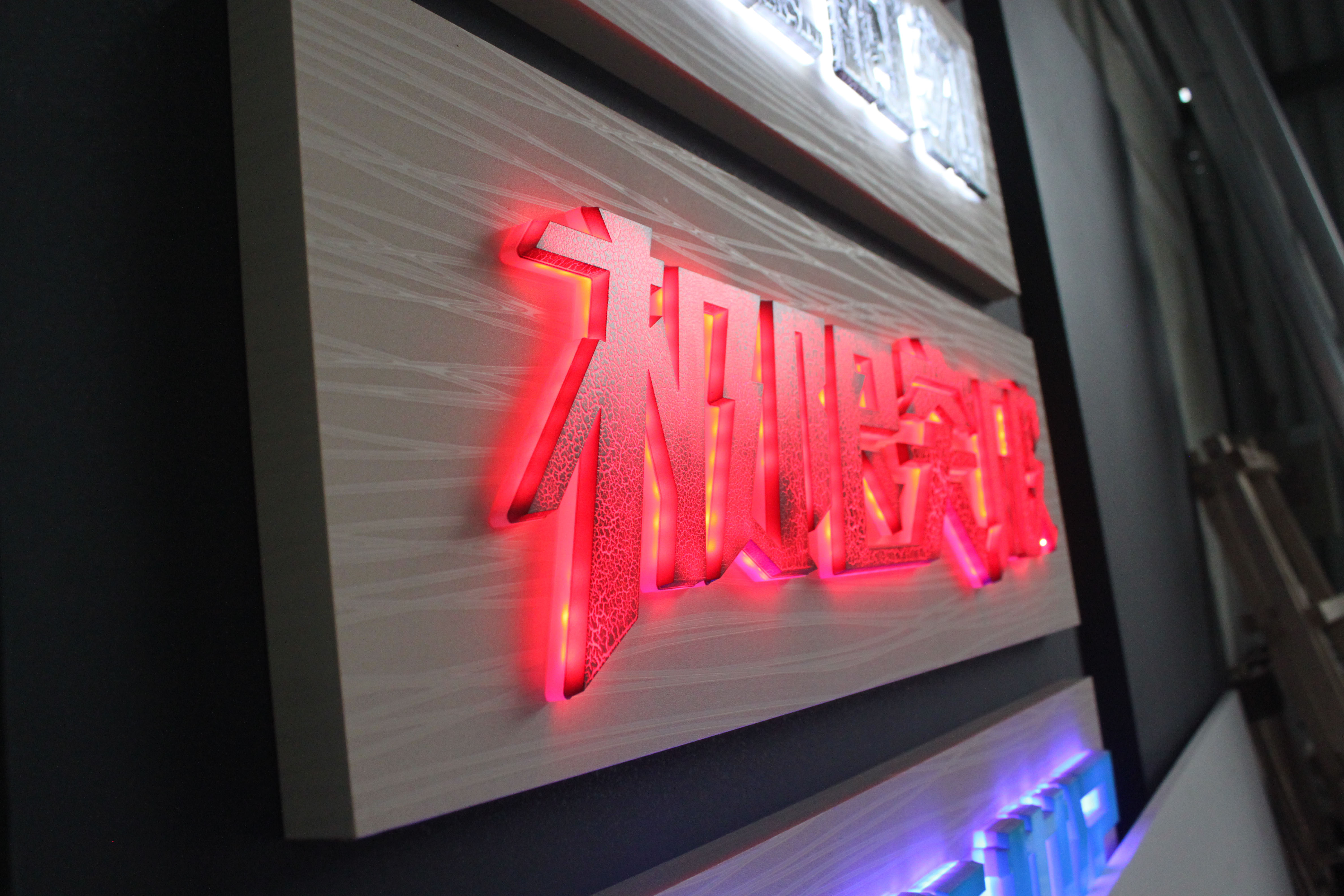 不銹鋼發光字,立體感強,內嵌LED光源,使用激光切割而成,然后經過打磨、上色、拋光的工藝之后成型的不銹鋼發光字。