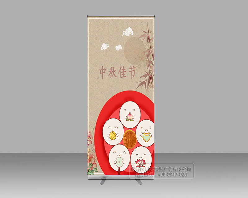 那么都會用什么材料制作中秋廣告宣傳呢,還是要看客戶的選擇??梢赃x用易拉寶展架形式,易拉寶展架組裝簡單,收放便捷,還可反復使用,只需要重新制作畫面進行更換即可。