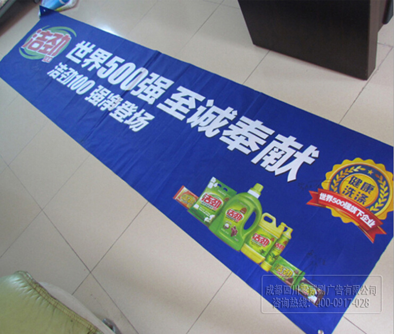 還有就是橫幅,橫幅使用牛津布材料制作,這種材料手感柔軟、垂直性好、防水性能良好。而且牛津布經過UV噴繪顏色新穎、不易褪色,深受顧客青睞。