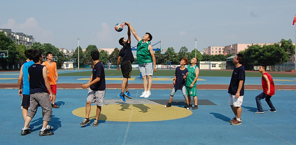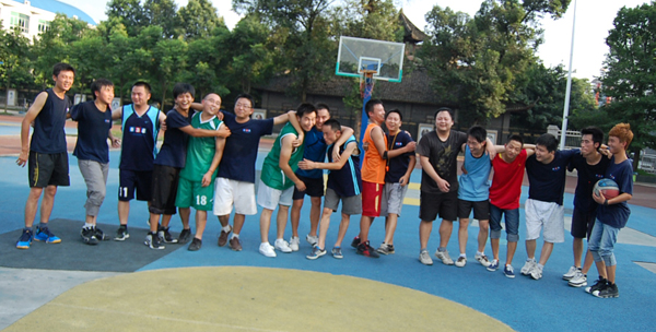 根據總公司董事會安排,豐富028總公司全體職工文化生活,讓我們快樂工作。2012年7月29日下午16:00-18:00,028總公司和變色龍家私在雙流中學進行了第一次籃球友誼賽,這天恰好是近日來氣溫最高的一天,達到33℃,站在雙中籃球場上,熱氣是一浪一浪地向場上襲來,讓人汗如雨下,但這些都減少不了我們參加比賽的激情!相反,隨著比賽的進行,球員們在場上努力奔跑,使勁拼殺,籃球在隊員們的手中就像玩一個乒乓球一樣靈活自如,他們時而反手扣籃,時而快三步上籃,讓場外的觀眾看得眼花繚亂,掌聲不斷!觀眾們是隨著進球而歡呼,隨著失球而嘆息,心情也是時而提緊,時而放松……
