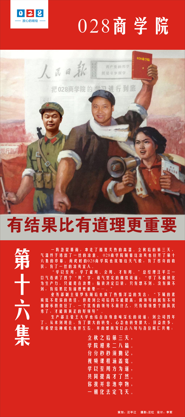 一陣急促暴雨,沖走了酷夏炙熱的高溫。立秋后的第三天,氣溫終于透出了一絲的涼意。 成都廣告制作公司028商學院隨著這涼爽也拉開了第十六集的序幕。而此時的028商學院也猶如這天氣般,有了些許的收獲,有了一絲的涼爽宜人。