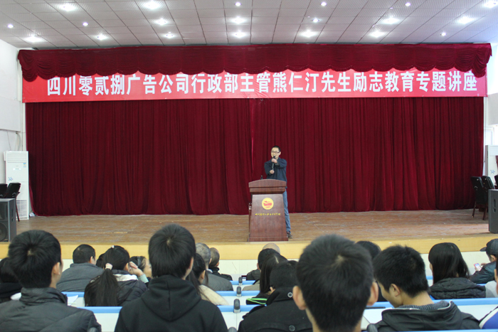 成都廣告公司行政部主管熊仁汀為該校計算機專業部2012級近500師生作了關于就業從業指導與勵志教育的專題講座。