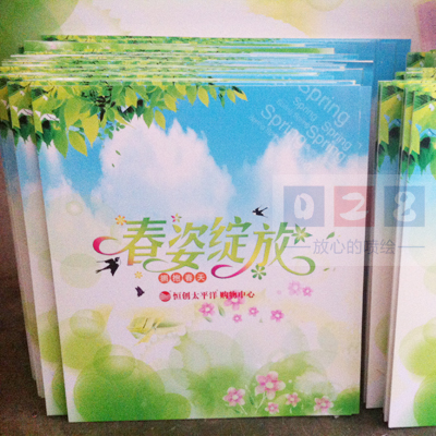 KT板價格 戶內裝飾畫、海報、地貼、X展架、易拉寶、制度牌等展覽展示器材畫面等,都是KT板常用的領域。KT板精度是在1440DIP以上,畫面精細,色彩鮮艷奪目,適合室內小幅面廣告畫面的制作。由于墨水為水性染料,畫面需要進行防水覆膜處理,戶外不防曬,陽光下極容易退色。民用裝潢畫,婚紗攝影,戶內外海報招貼,展板廣告,藝術寫真,工程與園林效果圖,商業文件封面較常見。