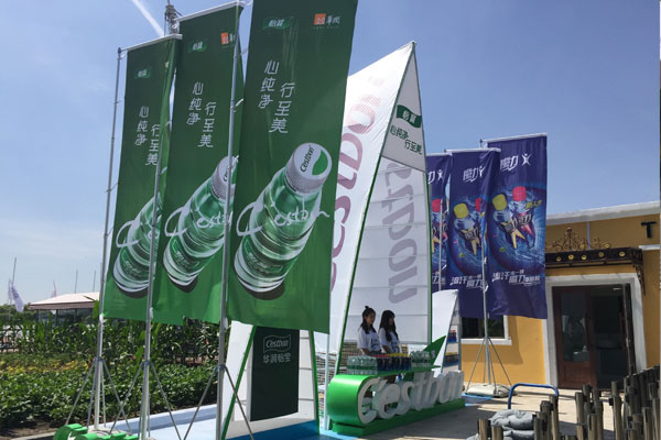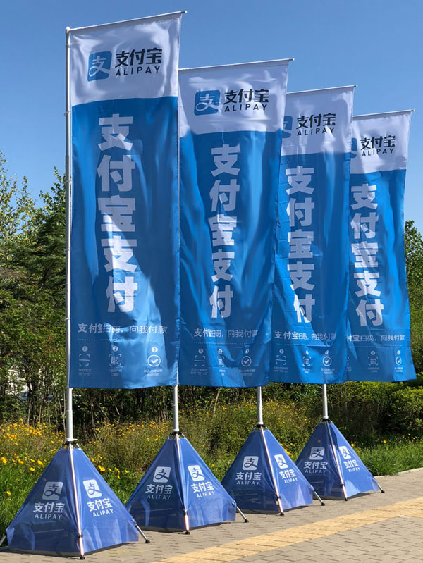 注水旗加工制作 注水旗顧名思義就是可以注水的。一般3米注水旗底座可注水12斤左右。注水旗是現在廣告旗的一種,用于戶外廣告或者展會現場。注水旗美觀耐用,使用方便,是極佳的廣告展覽器材。適用于商場、酒店、4S店、展館等門店廣告宣傳。