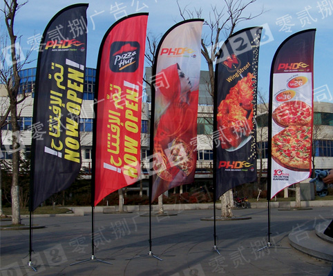 成都刀旗廣告制作 刀旗是因其形狀而得名,是形狀如刀的旗幟,也叫戶外旋轉屏或者羽毛旗,或者扇形旗,是戶外展覽的展示道具。而現代的路燈廣告刀旗,已經沒有了刀的形狀,大都是方形的了。刀旗廣告旗桿,刀狀伸縮廣告旗,無論有風無風都能伸展,便于觀看;在沙灘,草地使用釬子插入地下,水泥地面則有十字底座配套。在漢文化中,旗幟的起源和發展歷史大致可追溯到可記載的禹時期,即從牛尾的“旌”、“幡”開始。后來軍武及帝王儀仗等為壯大聲勢需要而廣泛壯大和發展了。常說的“旌旗招展”或飛龍、飛虎、飛彪旗等等是分公用的。而“督旗”、“牙旗”、“刀旗”等等是以形狀定義的。那下面我們零貳捌成都廣告制作公司就來給大家介紹一下刀旗的制作材質與使用范圍:
