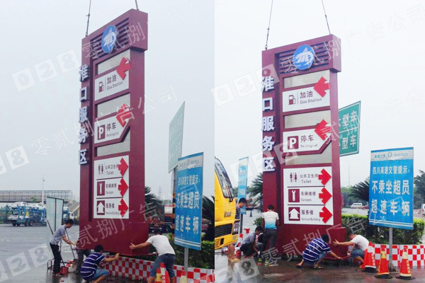 服務(wù)區(qū)是高速公路上必不可少的設(shè)施,能夠為高速公路的使用者提供服務(wù),對保障行車安全、保證運輸效率、緩解駕駛員在生理上的過度疲勞和車輛使用上的極限狀況十分重要。隨著高速公路通車里程的不斷延伸、客流量的不斷增長,必然要求服務(wù)區(qū)擴大服務(wù)項目的種類、數(shù)量等等,從而形成特殊的經(jīng)濟區(qū)域,其產(chǎn)業(yè)價值的重要性正日益受到重視。每一個服務(wù)站都會制作導(dǎo)視標牌和發(fā)光字,并且離服務(wù)區(qū)幾百米遠之外路面上設(shè)置指路標識牌提醒人們前方有服務(wù)站。所以服務(wù)區(qū)的導(dǎo)視標識的制作是非常重要的。
