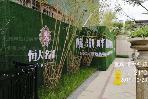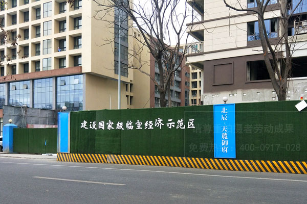 現在房地產項目圍墻圍擋廣告制作多是采用假草坪綠植來進行制作,這種用植被組成的工地圍擋也稱為綠籬式圍擋(