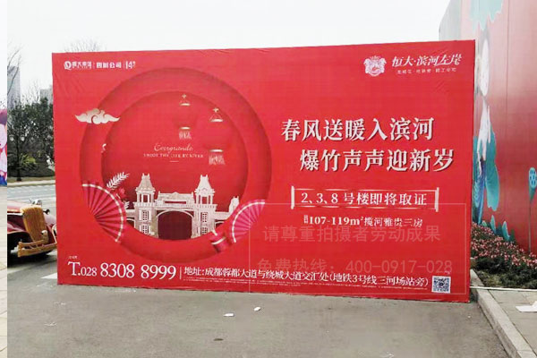 “春風(fēng)送暖如濱河,爆竹聲聲迎新”恒大地產(chǎn)樓盤戶外桁架廣告制作安裝