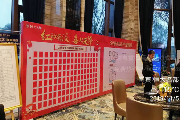 宜賓恒大名都營(yíng)銷中心紅包墻桁架廣告制作安裝