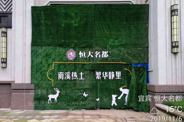 宜賓恒大名都仿真草坪綠植圍擋制作/PVC字營(yíng)銷廣告語(yǔ)制作安裝