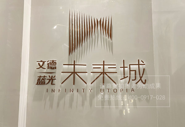 文德藍光未來城樓盤銷售中心l黃鈦金logo標識字制作安裝
