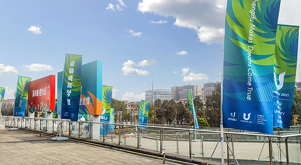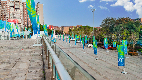 大運(yùn)會(huì)會(huì)館廣場(chǎng)道旗設(shè)計(jì)制作安裝案例