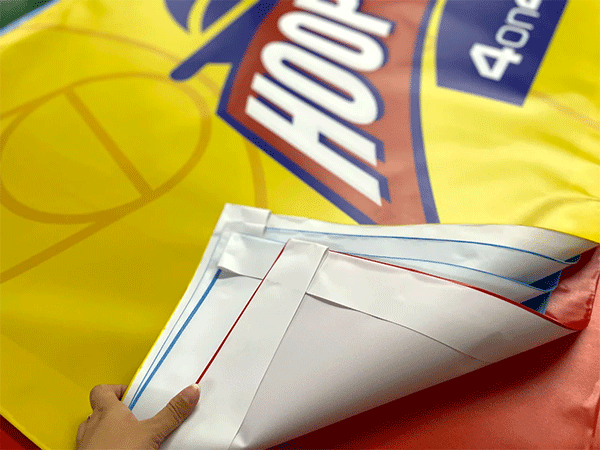 雙噴布,也叫夾黑布。品質(zhì)通常的雙噴布常使用普通布夾黑,而高端的雙噴布常使用刀刮布夾黑。不管哪一種布都有良好的遮光效應(yīng),可雙面彩印。通常用于市場天井的小型懸空掛畫、街道兩側(cè)的雙面旗幟展示。