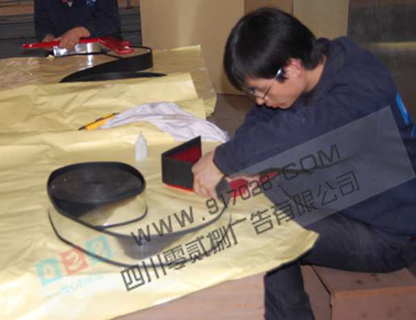 粘接邊條:本公司技術人員正在使用優質材料制作吸塑字邊條。