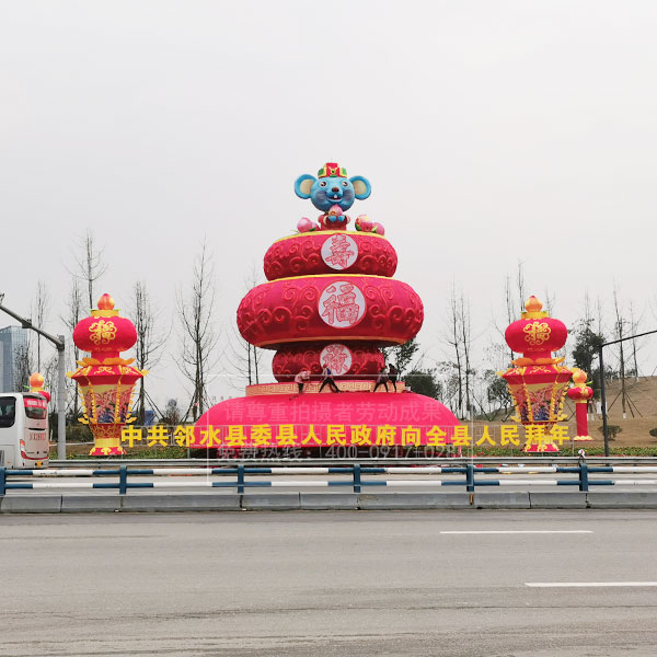 城市重要節點老鼠造型花燈制作安裝
