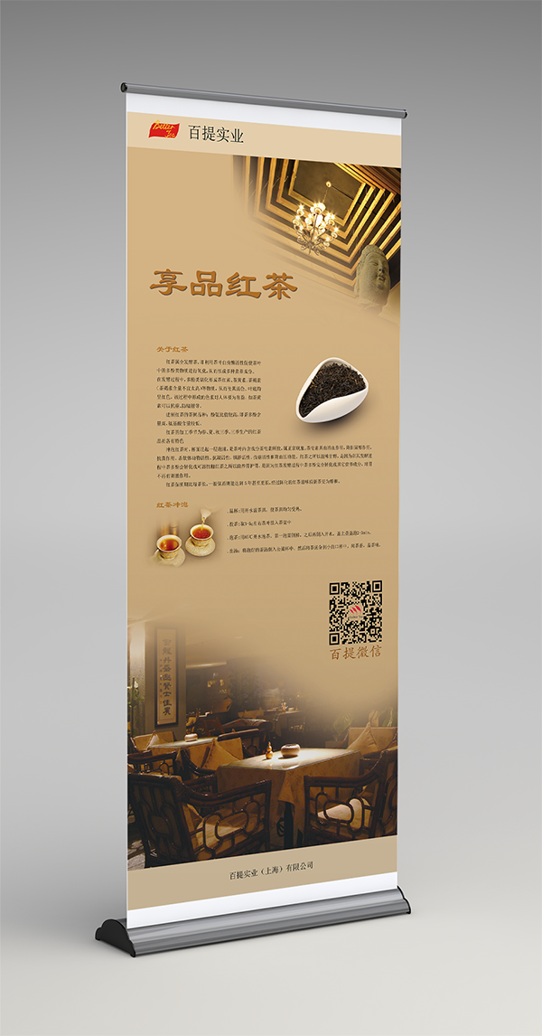 但是,這類展示架又和其它展示架又有一些不同之處。其它展示架的海報要么直接展開安裝固定上去,或者是鉤掛在上面,而我們的易拉寶上的海報則是可以伸縮的,再要使用的時候,直接把海報由卷軸處拉出來就可以了。