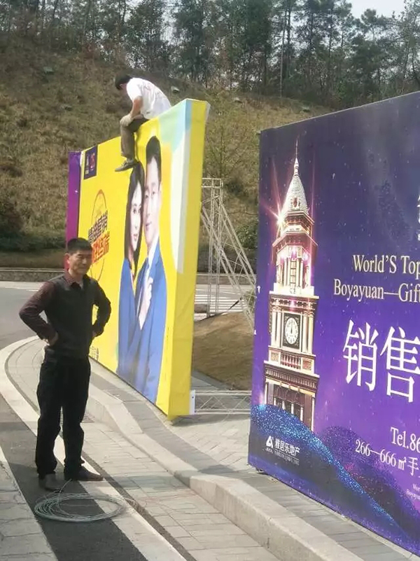 廣告布的制作安裝:一般像戶外那種比較大型的廣告噴繪布,會先安裝一個廣告鐵架,把鐵架固定好后,再把噴繪布安裝上去固定,或者是把噴繪布直接使用特定的釘子固定在需要安裝的板面上,主要的目的就是把噴繪布拉平整就好。