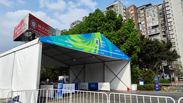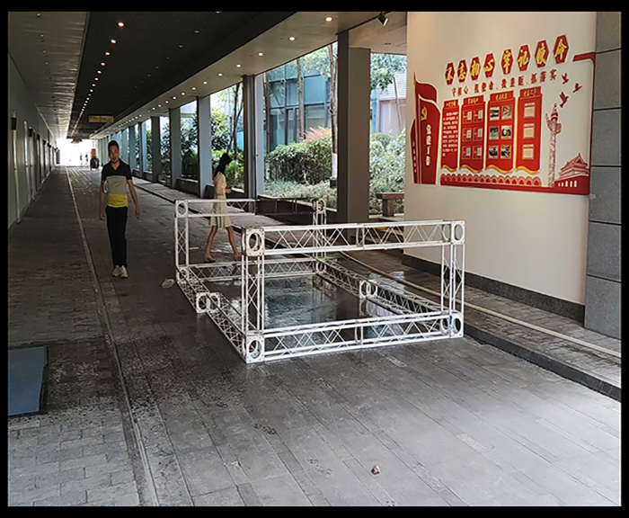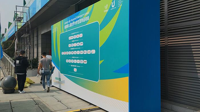 但是,像這些地方有的是臨時搭建的,所以沒有什么可以支撐大型噴繪布的支撐點,因此就會使用到桁架的運用。