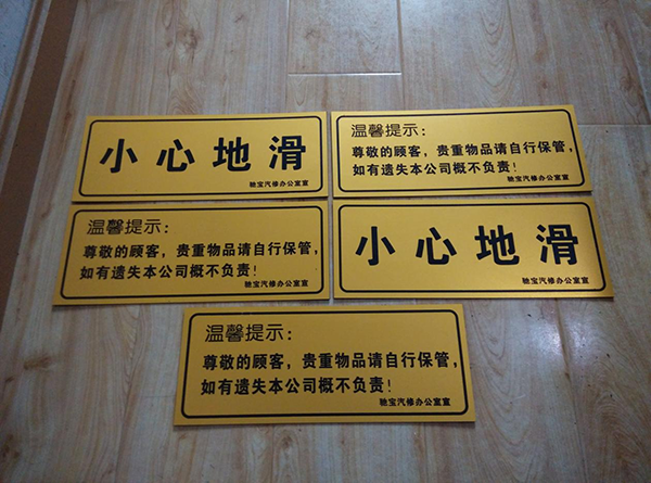 雙色板雕刻字:是使用叫雙色板作為原材料雕刻而成的。所謂的雙色板是通過一定的化學工藝然后生產出來的一種帶有柔性用來裝飾的,然后將第一層用機器雕刻掉,然后雙色板第二層就好露出顏色。